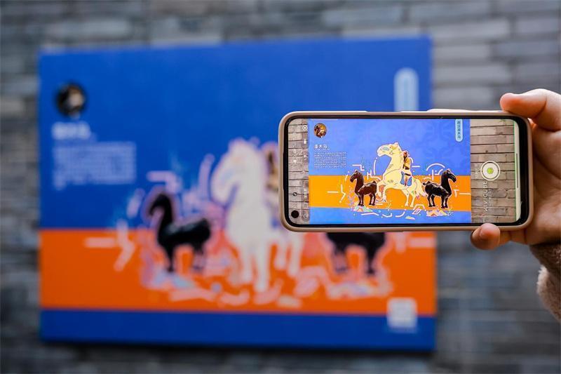 “瑞马临门·古巷生辉”宽径智趣艺术走廊是本次科技板块的核心亮点,以四川出土的12件马文化文物为原型进行数字艺术再创作,观众扫码即可唤醒AR立体神骏,实现历史文物与数字艺术的跨时空对话。街区还设置多处AR互动点位,扫描宽窄字牌、拴马石、如意墙等地标,就能触发古建筑光影、川剧熊猫、舞狮熊猫等动态效果,让藏在砖石间的城市记忆以数字化形式生动呈现。