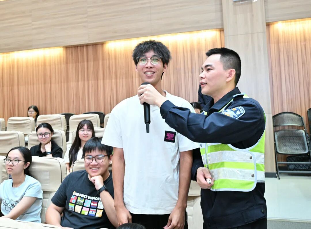 现场播放的摩电交通安全警示片,让在场师生深受震撼,随后,肇庆交警通过交通安全微课堂向同学们详细讲解步行、乘车、骑行等出行交通安全知识,提升同学们“知危险、会避险”的安全意识和自我防护能力。