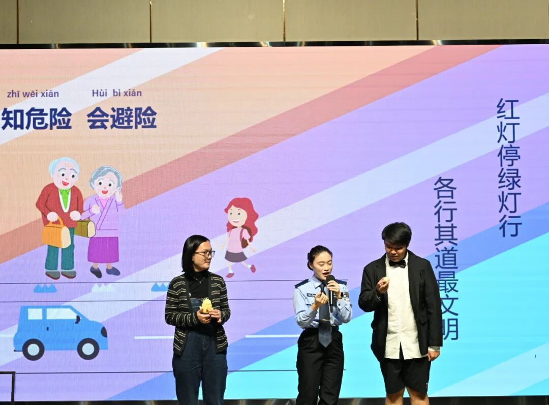交通安全微课堂、交警指挥手势操、合唱团演唱等节目巧妙地融入了交通安全元素,让师生们在欣赏表演的同时,能够深刻感受到交通安全的重要性。
